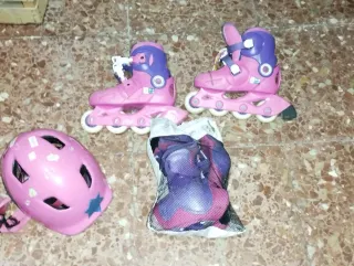 Set de patines en línea y protecciones. - Talla de patines: 35-37. - Incluye protecciones para patinaje.