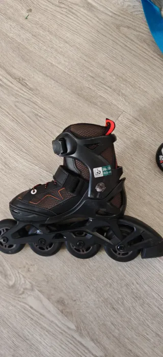 Patines en línea de la marca Boomerang. Sería para reparar los primeros cierres están roto o para piezas Incluye bolsa - Diseño en color negro y naranja. - Cierre rápido Quick Lock., los primeros están rotos. - Ruedas con diseño deportivo.