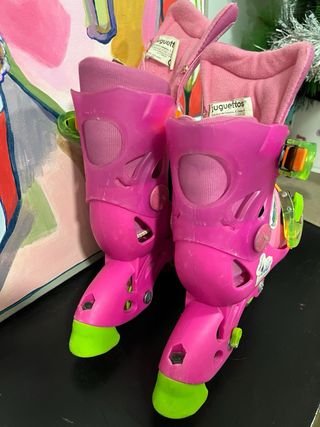 Patines infantiles en color rosa y morado, ideales para los más pequeños. Talla del 26 al 28 - Diseño ajustable. - Cierre de velcro y hebilla. - Ruedas resistentes.