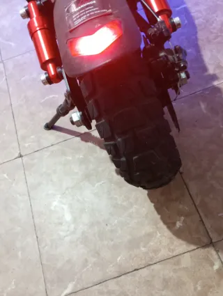 Patinete eléctrico con luces traseras rojas para todo terreno lo vendo por viaje - Ruedas todoterreno. - Manillar alto.para graduar al tamaño que le guste direccional todo ok muchas velocidades mirar la marca y se darán cuenta que buen patín es también precio a tratar quiero vender ya al mejor portor