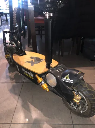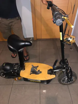 Se vende patín eléctrico Urban Fox. - Diseño robusto y deportivo. - Plataforma de madera. - Amortiguador delantero dorado. - Rueda trasera ancha.