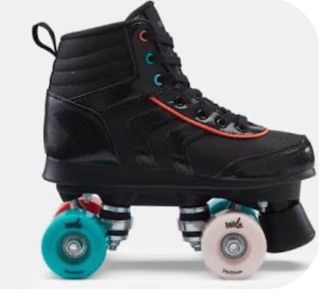 Patines de cuatro ruedas en color negro con detalles en naranja y turquesa. Diseñados para ofrecer estilo y comodidad. - Bota alta acolchada. - Cierre con cordones. - Ruedas de diferentes colores. Usados pero están en perfecto estado! Talla 33.