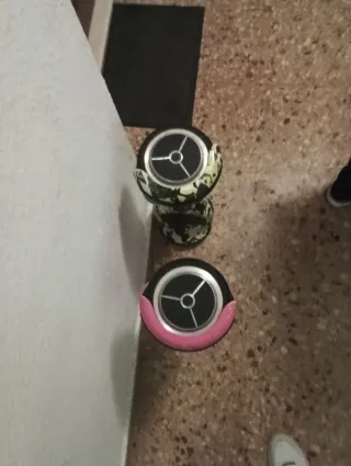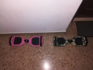 Se venden dos hoverboards, uno rosa y otro con diseño de camuflaje. Ideales para desplazarse de forma divertida. - Hoverboard rosa. - Hoverboard con diseño de camuflaje. - No incluye cargador.