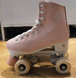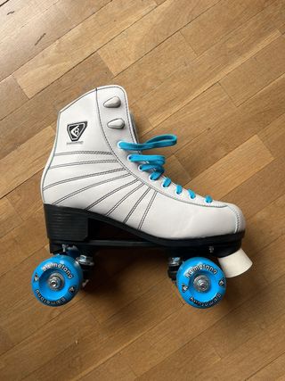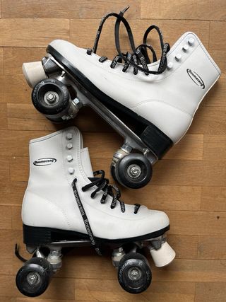 Patines de la marca Boomerang en color blanco, talla 38. - Diseño clásico de bota alta. - Cordones negros con el logo de la marca. - Ruedas negras.