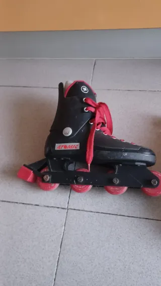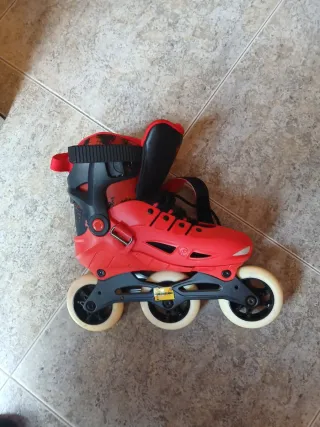 Patines en línea con un diseño llamativo en rojo y negro. Perfectos para deslizarse y divertirse. - Cierre de velcro y cordones. - Ruedas resistentes.la taya está en las fotos