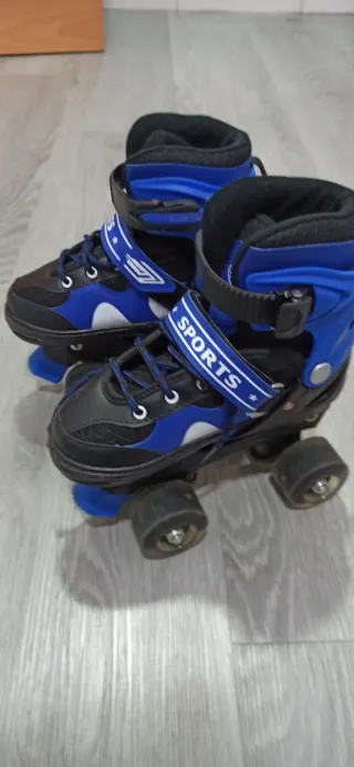 Patines infantiles con ajuste. - Color rojo y azul. - Cierre con correas. - Ruedas blancas.