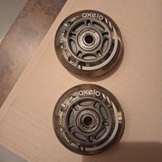 Pack de dos ruedas para patines Oxelo con luces LED que se activan al girar. Ideales para patinaje. - Diámetro: 70mm - Dureza: 80A - Incluye luces LED intermitentes Tengo 2 unidades (4 ruedas)