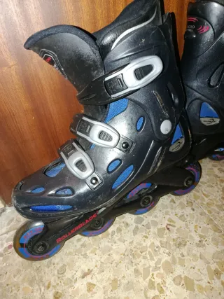 Se venden patines Rollerblade en buen estado. Regalo la bolsa. Tengo 2 pares, unos de la 40 y otros de la 41. Están en muy buen estado, solo un poco arañados en los laterales pero tuvieron pocos usos. - Diseño en color gris y negro. - Cierre de velcro y cordones. - Ruedas de poliuretano.