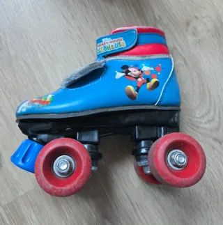 Set de patines infantiles y protecciones a juego con diseño de Mickey Mouse. Para un tamaño de pie de máximo 17 cm.