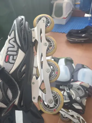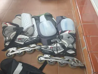 Se venden patines Fila en talla 46. Incluyen protecciones. - Patines Fila. - Talla 46. - Incluye rodilleras, colete y bolsa En muy buen estado fueron un capricho vostaron 180 Ahora estan en el mercado por 120 precio negociable