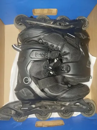 Patines en línea marca Rollerblade. - Talla 43. - Ruedas de 84 mm. - Cierre con velcro y cordones.