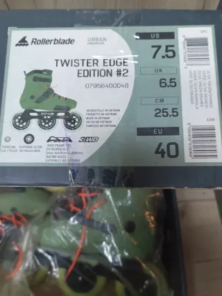 Se venden patines en línea Rollerblade Twin Edge en color verde oliva y naranja. Están en su caja original, Puestos una sola tarde, están NUEVOS!! Talla 40