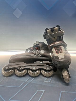 Se venden patines en línea Rollerblade para adultos, talla 42. Ideales para empezar a disfrutar del patinaje si eres una persona grande. La rigidez de la bota hace que puedas controlar el patín para aprender mejor. - Diseño en color gris y negro. - Ruedas 74mm con dureza de 80A