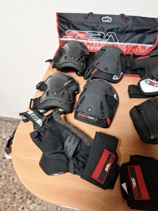 Set de protecciones SEBA para patinaje. Incluye rodilleras, coderas y muñequeras. - Diseño en color negro con detalles rojos. - Cierre de velcro ajustable. - Bolsa de transporte SEBA incluida.