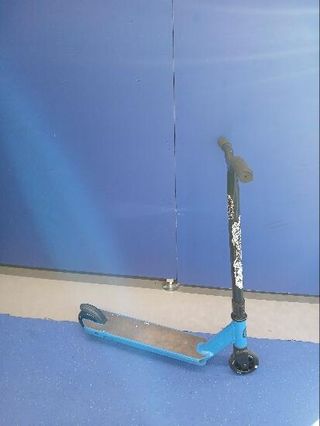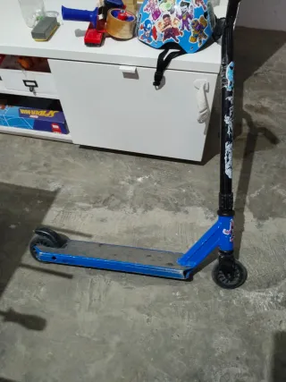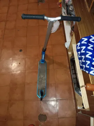 Patinete de la marca Oxelo con un diseño en color azul. - Manillar con puños negros. - Plataforma de patinaje. - Ruedas negras. -tambien se puede por 10€ -solo reus