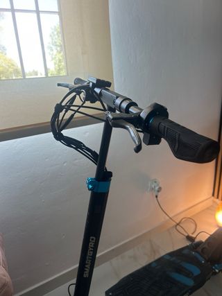 Patinete eléctrico Xiaomi en color negro y azul. - Puños de goma azul. - Cable de seguridad azul. - Timbre plateado.Patín eléctrico Xiaomi con modificaciones. Color gris oscuro. • Ruedas delanteras y traseras de 10 pulgadas casi nuevas. • Manillar con puños azules. • Cableado azul decorativo. -corre a 35km/h (se puede limitar a 25km/h) • Autonomia de 50 km • Doble bateria (la segunda bateria esta con menos de 100km utilizada) • Cargador incluido xiaomi original • Guardabarros nuevos • Pata de cabra • El mastil no tiene nada de holgura, esta como nuevo el mástil • PRECIO NEGOCIABLE‼️ Cualquier cosa me podeis preguntar