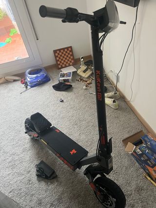 Patinete eléctrico para repuestos o para quien quiera repararlo. Ideal para obtener componentes. - Color negro y gris. - Ruedas con detalles en rojo. Dejo de funcionar Enciende La bateria tiene 1 año El patinete está perfecto
