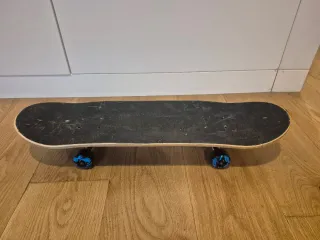 Patineta para deslizarse y practicar trucos. - Tabla con lija negra. - Ruedas azules.