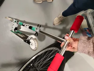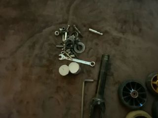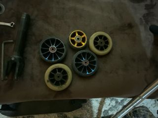 El scooter está en muy buenas condiciones y viene con 5 ruedas, un Indoscoot y piezas.