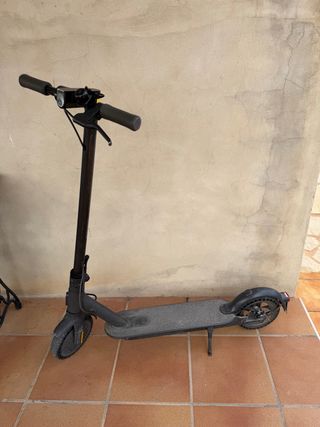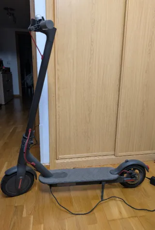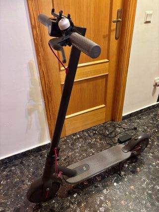 Patinete eléctrico Xiaomi en color negro. Ideal para desplazamientos urbanos. Ruedas macizas. En perfecto estado, con marcas de uso que se ven en las fotos. Incluyo cargador.