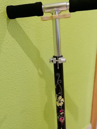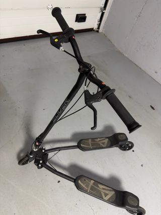 Patinete de tres ruedas con manillar ajustable. - Diseño en color negro. - Plataformas para los pies. - Frenos en el manillar. - Poco uso - Fue un regalo y los regalos no se deben vende. Pero quiero que se disfrute