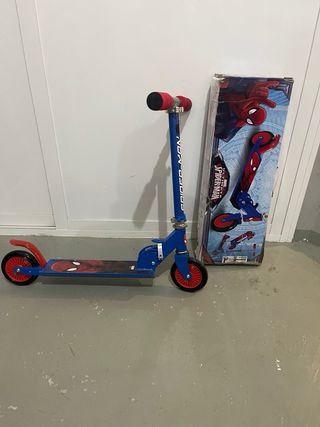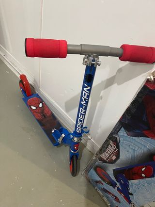 Patinete infantil con diseño de Spiderman. Ideal para los más pequeños. - Manillar ajustable. - Puños rojos.