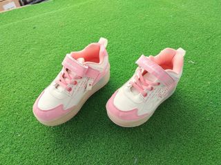 Zapatillas deportivas para niño con ruedas. - Cierre de velcro y cordones. - Diseño en blanco y rosa. - Suela con luces. En perfecto estado. Material de la suela Caucho Altura de eje Tobillo Altura de la plataforma 3 cm Material exterior Sintético Acerca de este artículo Aizeroth Zapatillas con carga USB, 7 colores LED intermitentes con ruedas duales, patines automáticos, zapatillas para patinar, calzado para fitness al aire libre, gimnasia, calzado para correr, zapatillas para niños y niñas Marca: Aizeroth Color: E68pink