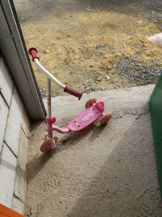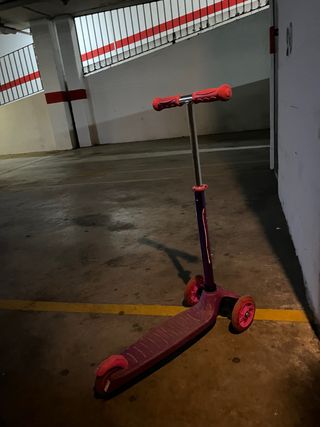 Patinete de tres ruedas en color rosa, ideal para niñas. Se encuentra en buen estado. - Diseño de tres ruedas para mayor estabilidad. - Manillar ajustable. - Plataformas antideslizantes.