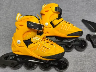 Patines en línea Oxelo Fitness Fit 3 en color amarillo, en perfecto estado. Prácticamente nuevos con apenas 2 ratitos de uso. Regalo muñequera y bolsa de transporte. - Ajuste micro-métrico para un cierre seguro. - Cierre de velcro adicional para mayor sujeción. - Ruedas de 76mm para un patinaje fluido.