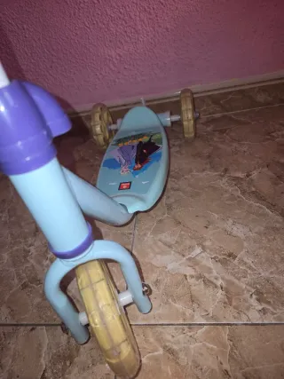 Patinete de tres ruedas con diseño de Frozen. Muy poco uso Con Ana, Elsa y Olaf