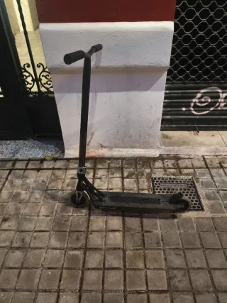 Vendo patinete de saltos Oxelo MF 3.6 V5 en color azul y negro. Es el modelo reforzado de Decathlon, ideal tanto para iniciación como para nivel intermedio en skatepark. Lo mejor de este patinete: •Estado: Funciona perfectamente. La dirección gira suave y no tiene holguras raras •Ruedas: De 120mm con núcleo de aluminio (mucho más resistentes que las de plástico) •Extras: Incluyo los pegs instalados (los tubos negros en los ejes) para grindar, que suelen comprarse aparte •Mantenimiento: Siempre guardado en interior. Tiene los típicos roces estéticos en la tabla y manillar del uso normal (ver fotos), pero la estructura está impecable
