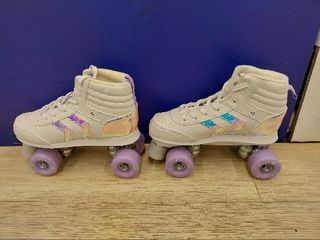 Patines ajustables para niñas con un diseño en color rosa y blanco. Perfectos para iniciarse en el patinaje. - Sistema de ajuste de talla. - Cierre de velcro y hebilla. - Ruedas de patinaje.
