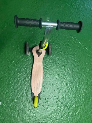 Patinete infantil de tres ruedas de Decathlon. - Color verde. - Manillar ajustable. - Ruedas negras.