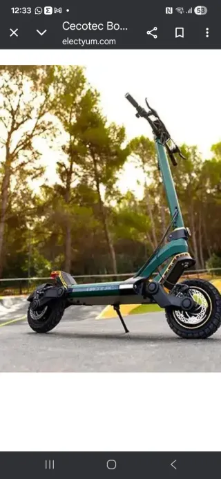Patinete eléctrico Cecotec Bongo con motor de 1200W. El patinete no enciende. - Color verde oscuro. - Rueda delantera y trasera. - Manillar con puños negros. - Cambio y vendo
