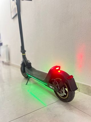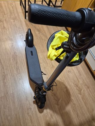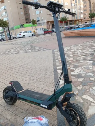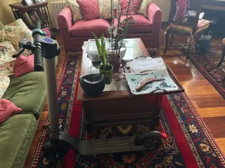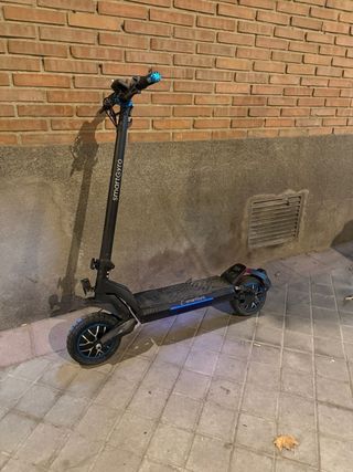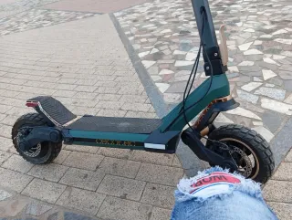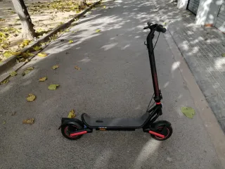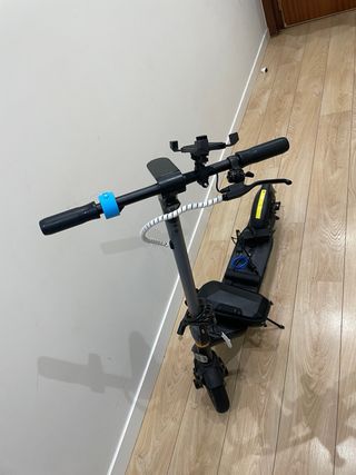 URGE VENTA POR MUDANZA! Solo la segunda batería 120€ y los neumáticos 80€ ya me han costado nuevos más que el precio que lo vendo Cargador y 2 baterías extraíbles e intercambiables, una es nueva de 5000mAh (también la vendo aparte). Se pueden cargar por separado, no tienen que estar dentro del patinete Ruedas tubeless de 8,5” rellenas con líquido verde antipinchazos Neumáticos recién puestos All-Terrain lluvia, asfalto y tierra 3 modos con velocidad de crucero Eco, Confort y Sport Triple sistema de frenado: de disco, eléctrico y manual trasero Pantalla LED que muestra la velocidad, nivel de batería Sistema de puños y mástil plegable