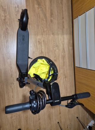 Patinete eléctrico Cecotec en buen estado, ideal para desplazamientos urbanos. Incluye cargador y casco. - Modelo Cecotec Bongo. - Color gris. - Plegable para facilitar su transporte.