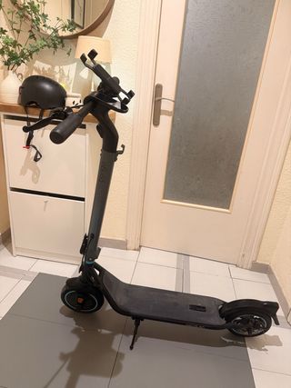 Patinete eléctrico Bongo de Cecotec, ideal para desplazamientos urbanos. Su diseño es moderno y funcional. - Pantalla LED integrada. - Manillar ajustable. - Freno electrónico. - Ruedas recién cambiadas a más pulgadas que las que traía para mejor tracción y velocidad. - Pata de apoyo en perfecto estado. - Cargador. Hay que ponerle al mástil alguna pestaña, ya que tiene un poco de olgura, es únicamente lo que tiene. Por el resto está en perfecto estado. Precio negociable y de regalo el casco nuevo.