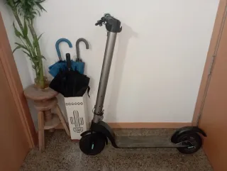 Patinete eléctrico plegable, en buen estado. No está homologado por la DGT, pero se puede circular con él sin problemas en la vía pública hasta el 21/01/2027. Pasada esa fecha, se puede seguir utilizando en terrenos privados y fuera de España.