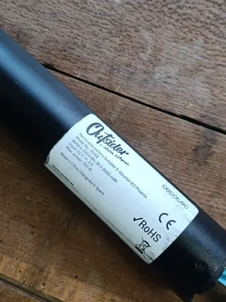 Patinete eléctrico Cecotec Outsider E-Volution 8,5 Phoenix. - Modelo: 07024 - Voltaje: 220-240 V, 50/60 Hz - Batería: 36 V, 6400 mAh - Potencia nominal: 350 W - Potencia máxima: 700 W - Velocidad máxima: 25 km/h - Carga máxima: 120 kg - Protección IP54 - Fabricado en China, diseñado en España.