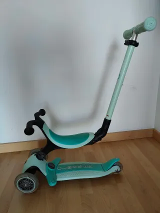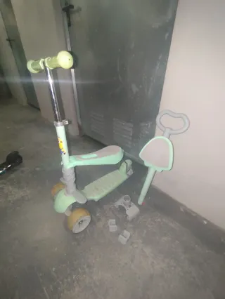 Este patinete es versátil y se adapta al crecimiento de los niños. Su diseño permite usarlo de tres maneras diferentes. Asiento ajustable en altura. Usado pero de buena funcionamiento.