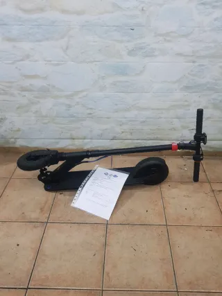 Patinete eléctrico para niño/a. Sencillo de usar y muy divertido. En muy buen estado estético y funcional. Velocidad máxima: 6 km/h. Potencia motor: 100W. Batería: 22V - 2.0Ah. Autonomía aproximada: 5 km. Acelerador/freno de pie. Freno trasero. Regulable en altura: hasta 85-95 cm. Dimensiones: 74 x 36 cm