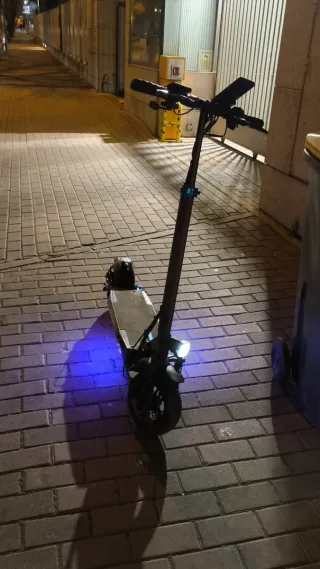 Patinete eléctrico Speed Way Pro con luces LED. - Diseño robusto. - Ruedas anchas para mayor estabilidad. - Luces LED azules, de cruce blanca, posición y freno Rojas - Manillar ajustable. -Baterías celdas SAMSUN nuevas, compradas en agosto del 2025,4000km Max de uso. -Motor rueda trasera también cambiado nuevo de la misma fecha que cambie las baterias. -Tengo los recibos de la compra de las baterías y del cambio de motor. -El patinete funciona en perfectas condiciones no le falla nada,tiene desgaste del uso que le edado para ir y venir de yrabajar, hay que ponerle pastillas de freno nuevas y ajustar el manillar solamente