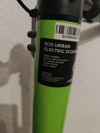 Patinete eléctrico de color verde y negro. USADO UNICAMENTE DOS VECES. La batería solo se ha cargado UNA VEZ. Está prácticamente nuevo.EL CASCO TAMBIEN LO VENDO EN MI PERFIL. - Diseño moderno y funcional. - Manillar ajustable. - Plataforma antideslizante.