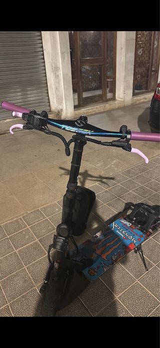Acepto cambio, por iphone , moto 49 cc , 125, coche , ps5 , pc gaming etc como forma de pago Patinete eléctrico con un diseño llamativo y personalizado. - Manillar con empuñaduras ODÍN moradas. - Manillar con acabado iridiscente de fibra de carbono marca tossek. - tabla con diseño de Monster Energy mango loco -detalles y acabados en colores lila -lleva refuerzo de mástil T-rex - batería 35 ah el máximo que ahí - velocidad máxima 80 kh deslimitado y limitado 25 kh autonomía 60 km