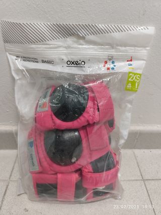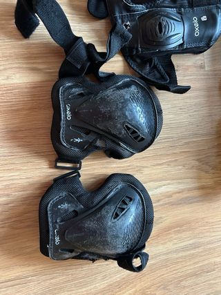 Rodilleras, coderas y muñequeras Decathlon Oxelo talla 2XS. Desgastados por un uso normal. Entrego en mano en estación Renfe las Retamas (Alcorcón). También puedo hacer envíos.