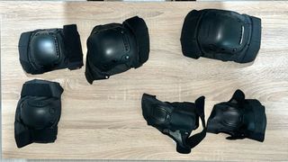 Set de 3 protecciones oxelo (decathlon) color blanco, compuesto por rodillera, codera y muñequera. En muy buen estado poco uso, con su bolsa para guardar y transporte.