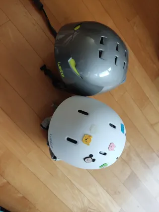 Dos cascos, uno gris de la marca Wedze y otro blanco de Decathlon, ideales para esquí o patinete. Talla M 53cm -56cm - Casco gris con detalles en amarillo. - Casco blanco decorado con pegatinas infantiles. - Cierre de correa ajustable. En perfecto estado, solo se han usado una vez. 25€ los dos cascos. 15€ un casco. Estoy en Barcelona junto metro Bac de Roda. Hago envios