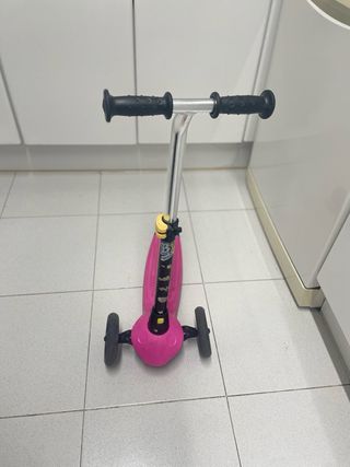 Patinete de tres ruedas de Decathlon, ideal para los más pequeños. Cuenta con luces en las ruedas. - Tres ruedas para mayor estabilidad. - Manillar ajustable en altura. - Diseño colorido y divertido.