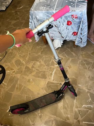 Patinete plegable Oxelo Mid 9 Ride fast Decathlon. Está en buen estado y listo para usar. (Roces tipicos del uso) - Plegable para facilitar su transporte y almacenamiento. - Diseño ligero y resistente. - Perfecto para niños. - Cinta para colgar y transportar. - Altura Regulable (Medidas en posicion mas pequeña en fotos) -Sistema de frenado trasero con el pie y de maneta en el delantero.