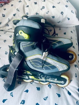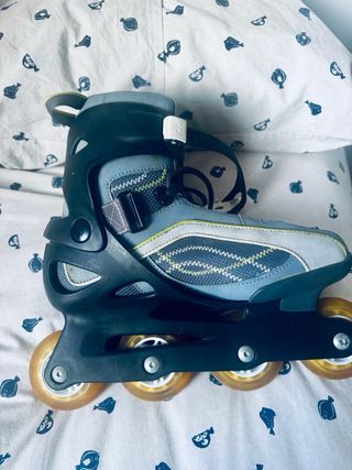 Se regulan para que valgan desde la talla 28 hasta la 30. En buen estado aunque, como son para principiantes, tienen sus típicos roces. Se aprecian fácilmente en las fotos. Las ruedas no están muy usadas. Ha patinado poco, la verdad.